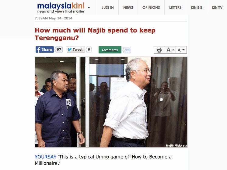 ![]() Satu notis tuntutan saman dihantar kepada kepada portal berita pembangkang, Malaysiakini, di atas penerbitan artikel yang berunsur fitnah terhadap UMNO dan Datuk Seri Najib Tun Razak melalui Peguambela dan Peguamcara Hafarizam Wan & Aisha Mubarak. Ia berkiatan penerbitan artikel yang bertajuk A Case Of The PM Reaping What He Sows dan How Much Will Najib Spend To Keep Terengganu. Peguambela Raihanah Ariffin, notis tuntutan saman tersebut telah dihantar ke pejabat operasi Malaysiakini yang bertempat di Jalan Bangsar Utama petang Khamis. “MKINI DOTCOM Sdn Bhd melalui portal beritanya, Malaysiakini secara sedar telah mengumpul dan memilih komen-komen yang berunsur fitnah dan hasutan yang jelas menunjukkan niat jahat terhadap anakguam kami dan telah diterbitkan di laman web tersebut bertarikh 14 Mei 2014 baru-baru ini. “Biarpun pada awalnya wakil daripada portal berita tersebut berkeras tidak mahu menerima notis tersebut, namun akhirnya mereka akur dan menerimanya,” jelasnya dipetik dari umno-online. Kata Raihanah, notis tuntutan itu menuntut portal tersebut untuk membuat permohonan maaf, penarikan balik artikel, menyediakan akujanji bertulis tidak akanmengeluarkan lagi sebarang kenyataan terhadap UMNO dan Datuk Seri Najib Tun Razak. Selain menyediakan akujanji akan lebih berhati-hati untuk menerbitkan semula komen pengguna secara amnya serta membayar ganti rugi serta kos perbelanjaan dalam perkara ini. “Segala tuntutan yang dibuat oleh anakguam kami itu hendaklah dipenuhi oleh portal berita Malaysiakini dalam tempoh masa 48 jam dan sekiranya mereka gagal, maka kami akan meneruskan prosiding mahkamah bagi permohonan memfailkan injunksi bagi menghalang sebarang penerbitan lanjut berhubung isu tersebut terhadap Malaysiakini,” jelasnya. Turut menerima notis tuntutan saman itu ialah Ketua Pengarang Malaysiakini, Fathi Aris Omar selain Ketua Pengrang Kumpulan, Steven Gan kerana telah membenarkan artikel tersebut diterbitkan.