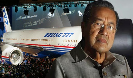 Bekas Perdana Menteri, Tun Dr Mahathir Mohamad MH370: Ada pihak sedang menyembunyikan sesuatu - Dr Mahathir KUALA LUMPUR: Bekas Perdana Menteri, Tun Dr Mahathir Mohamed yakin syarikat Boeing dan agensi-agensi tertentu mempunyai keupayaan untuk mengambil alih "kawalan tanpa gangguan" daripada kapal terbang komersial. Katanya pesawat Boeing 777 milik Malaysia Airlines (MAS) penerbangan MH370 merupakan salah satu daripada kapal terbang yang diambil alih. "Sangat jelas Boeing dan agensi tertentu mempunyai keupayaan untuk mengambil alih "kawalan tanpa gangguan" penerbangan komersil yang mana MH370 salah satu darinya. "Boleh atau tidak juruterbang MH370 hilang kawalan setelah seseorang secara langsung atau dari jarak jauh mengaktifkan alat untuk merampas kawalan pesawat itu," katanya dalam tulisan terbaru di blognya. Katanya, dengan alasan tertentu, media tidak akan melaporkan apa-apa melibatkan Boeing atau Agensi Perisikan Pusat (CIA) Amerika.