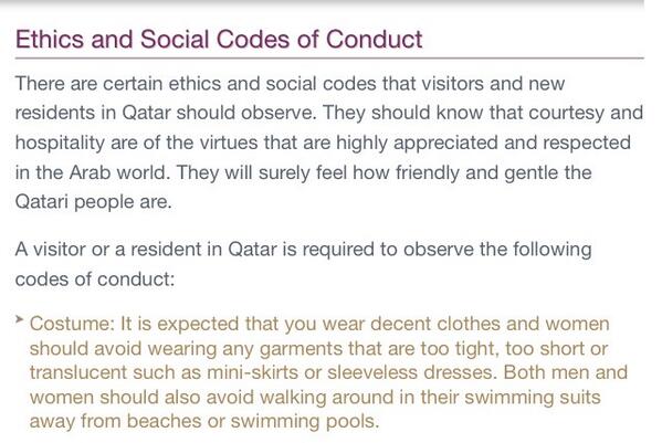 ![]() Kalau melancong di Qatar, korang akan dapat kertas ni. Demi menjaga budaya di tempat awam Qatar. Lengging bukan seluar ye, berbanding Malaysia siap ada design legging celoreng lagi ![]()