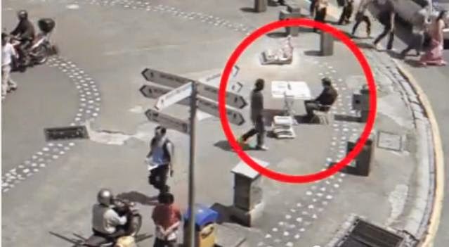 Seram! rakaman video CCTV di sebuah bulatan yang agak sibuk, kejadian ini dikatakan di rakam di Kuala Lumpur pada 29 Apr 2014. Dalam kesibukan kota raya Kuala Lumpur kelihatan seorang tua sedang duduk di kerusi sambil menjual suratkhabar.
