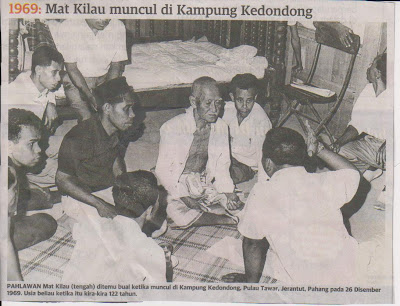 PAHLAWAN terbilang Melayu, Mat Kilau tidak hanya berjuang menentang penjajah di negeri kelahirannya, Pahang malah turut sama menyemarakkan semangat perjuangan bagi menebus maruah bangsa dan agama di negeri jiran iaitu Terengganu dan Kelantan. Anak kelahiran Kampung Masjid Pulau Tawar, Jerantut itu adalah anak kepada orang besar Pahang, Imam Rasu yang turut dikenali sebagai Tok Gajah.Sekitar 1890-an, berlaku pemberontakan rakyat di Pahang yang marah dengan tindakan British mengambil alih tugas memungut cukai dan hasil daripada pembesar negeri yang dilantik.![]() Antara yang menerima akibat daripada campur tangan pentadbiran British di Pahang adalah pembesar negeri iaitu Tok Gajah dan Datuk Bahaman. Kesan daripada itu, bermula siri pemberontakan di kalangan pembesar negeri hingga mengakibatkan mereka diburu British kerana menentang penjajah. Rentetan daripada peristiwa itu, British mengisytiharkan perang terhadap beberapa pembesar Pahang dan mengarahkan mereka ditangkap serta dihukum. ![]() Bagaimanapun, Mat Kilau dan beberapa pembesar lain berjaya melarikan diri dan menyebarkan semangat perjuangan menentang penjajahan di negeri jiran iaitu Kelantan dan Terengganu. Perjuangan Mat Kilau mendapat sokongan padu daripada dua tokoh ternama kedua-dua negeri iaitu ulama terkenal Terengganu, Tokku Paloh dan Abdul Rahman Limbong serta Tok Janggut di Kelantan. ![]() Melalui kerjasama dan sokongan padu yang diberikan, Mat Kilau yang agak mahir dengan ilmu hutan menyusup masuk ke Terengganu dan Kelantan melalui beberapa laluan khusus yang hingga ke hari ini laluannya masih tetap digunakan khususnya pencari gaharu. ![]() Dipercayai, terdapat tiga laluan yang digunakan Mat Kilau untuk ke Terengganu dan Kelantan bagi mendapatkan sokongan penduduk di kedua-dua negeri itu. Antaranya, laluan dari Kampung Bantal di Jerantut ke Kampung Pasir Raja di Dungun, laluan dari Jerantut ke Pasir Nering, Hulu Terengganu dan laluan dari Jerantut ke Gua Musang Kelantan. Bagaimanapun, laluan yang kerap digunakan Mat Kilau dan pengikutnya bagi mengelakkan diri daripada British adalah laluan antara Kampung Bantal ke Kampung Pasir Raja. Penentangan Mat Kilau yang berterusan terhadap British menyebabkan dia menjadi orang buruan yang paling dikehendaki dan dicop sebagai penderhaka oleh Inggeris menyebabkan beliau mengasingkan diri dan hidup berpindah randah dari satu tempat ke satu tempat. ![]() Pada Oktober 1895, laporan akhbar Inggeris yang diterbitkan di Singapura, iaitu The Straits Times dan The Free Press menyatakan "Ketua Pendehaka, iaitu Datuk Bahaman ditahan pemerintahan Siam. The Free Press pula menyatakan Mat Kilau yang melawan ketika ditangkap cedera pada muka dan kepala. Kecederaannya dikatakan parah dan dia mati dalam perjalanan ke hilir Kota Bharu disebabkan kehilangan darah yang banyak. Dengan tersiarnya berita kematian Mat Kilau oleh akhbar The Free Press keluaran 22 Oktober 1895, maka tamatlah riwayat pahlawan Melayu itu. Bagaimanapun, apa yang sebenarnya berlaku tidak diketahui kecuali beberapa orang sahabatnya seperti Mustafa Awang Mat (Jusoh Rimau), Pendekar Tok Demali, Raja Ibrahim (Pak Him), Mat Kelantan dan beberapa orang lain. Disebabkan Mat Kilau dicop sebagai 'penderhaka' oleh Inggeris, maka terpaksalah Mat Kilau mengasingkan diri dan berpindah dari satu tempat ke satu tempat dan akhirnya bermastautin di Batu 5, Jalan Kuantan-Gambang. Sejak 1930, Mat Kilau terpaksa menukar namanya buat beberapa kali dan akhirnya dia memakai nama Mat Siam. Pada Disember 1969, Tuhan menggerakkan hati Mat Kilau yang pada itu memegang kad pengenalan diri K/P 2044778 dan bernama Mohamad bin Ibrahim, memperkenalkan dirinya yang sebenar. Untuk mengelakkan dirinya daripada menjadi tumpuan ramai, Mat Kilau bersetuju mengumumkan dirinya di kampung kelahirannya. ![]() Atas daya usaha Omar Mat Kilau, pahlawan Melayu itu dibawa ke kampung asalnya iaitu Kampung Masjid, Pulau Tawar. Pada Jumaat 26 Disember 1969, Mat Kilau pergi ke masjid di Kampung Masjid untuk bersembahyang Jumaat. Selepas sembahyang, Mat Kilau membaca Quran dan kemudian mengisytiharkan dirinya sebagai Mat Kilau. ![]() Pengisytiharan itu menggemparkan orang ramai sehingga Kerajaan Pahang menubuhkan sebuah jawatankuasa untuk menyiasat. Jawatankuasa itu dibentuk pada 8 Januari 1970. Beberapa orang ditemuramah bagi membuktikan bahawa Mat Siam itu adalah Mat Kilau. Setelah disahkan, pada jam 10.30 pagi Khamis, 6 Ogos 1970, Mat Siam diisytiharkan sebagai Mat Kilau oleh Menteri Besar Pahang, Raja Tan Sri Yahya Mohd Seh. ![]() Setelah empat hari pengumuman pengiktirafan terhadap dirinya dibuat, Mat Kilau meninggal dunia kerana uzur. Usianya ketika itu dipercayai 122 tahun. Dengan kematiannya itu, beliau tidak sempat menceritakan kisah perjuangannya lebih lanjut.