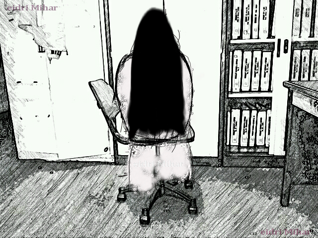 Kisahnya macam ini, pada suatu hari aku pulang lewat sedikit sebab banyak kerja yang hendak diselesaikan. Office aku ini tidaklah sebesar manapun, cuma bangunan Lot kedai department aku pun di tingkat atas sekali. Bebalik ke cerita, petang itu dalam pukul 6.30 petang tinggal aku seorang sahaja di perjabat,meja aku paling hujung sekali.. masa itu aku hendak ke toilet, toilet pun hujung sekali, bila aku melangkah melintasi 3 cubic aku tiba-tiba terdengar PC aku punya disc terbuka. Akupun terpandang dan terfikir ada burn apa-apa ke? Tapi sebab perut aku sudah sakit sangat aku malas hendak ambil peduli. Masuk sahaja toilet terasa sunyi sangat, ye la seorang je di office. Aku masuk tandas paling belakang sekali, tanda pejabat aku ini ada dua..tiba-tiba aku terdengar tandas depan ada orang buka pili paip, terus meremang bulu roma aku. Dalam hati 'aduh siapa pula ini' nak tanya tapi tidak berani sebab tiada dengar pula bunyi pintu utama masa toilet buka. Lepas itu terdengar pula bunyi flush toilet, lagi la seriau di buatnya. Selesai sahaja urusan dalam toilet terus jalan keluar tanpa melihat toilet depan yang gelap itu, terus ker meja dan save dokumen angkat beg cabut tertengok tempat dvd tertutup pula, tadi masa di toilet nampak terbuka. Seram 'entah-entah masa menaip pun benda itu tengok apa yang saya taip'.