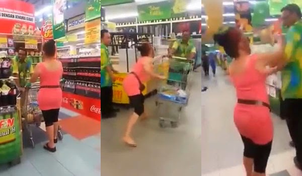 Video seorang wanita yang telah mengamuk dan membaling barang di sebuah pasaraya kini tersebar luas. Kejadian berlaku di Giant Pelangi Leisure Johor Bahru. Klip video ini dirakam oleh pengunjung yang berada di sekitar tempat kejadian. Wanita itu juga bertindak agresif dan menjerit-jerit apabila mahu diheret ke bilik pengawal. Daripada info yang diperolehi, mengatakan wanita tersebut telah mencuri barang dan cuba untuk melarikan diri. Saksikan video dibawah ini : -