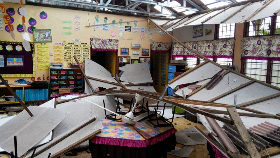 "Pemeriksaan awal mendapati tujuh rumah musnah termasuk sekolah mengalami kerosakan teruk, manakala tiga rumah mengalami kerosakan kecil membabitkan bahagian bumbung dan dinding. "Selain itu difahamkan makmal komputer dan bilik darjah bagi murid pra-persekolahan turut musnah," katanya. Antara rumah-rumah yang musnah dibantai puting beliung : |