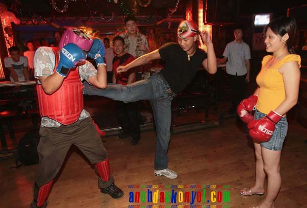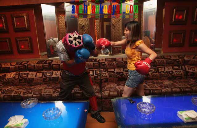 Para pelanggan yang mahu menikmati menu hiburan ini, mereka dikenakan bayaran sebanyak 6U$ dollar bergantung kepada jenis aksi yang dipilih. Kebanyakkan pengunjung yang mencuba menu hiburan ini adalah golongan wanita yang bekerja di bar atau kafe. Mungkin letih dengan karenah pelanggan, mereka pun cuba melempiaskan marah di kafe ini. (Pelayan tidak dibenarkan membalas serangan, cuba kalau Abang Sado yang tumbuk) |
