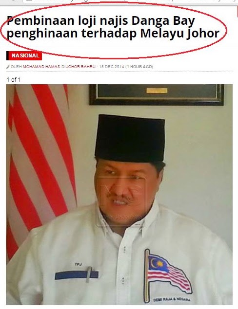 Ahli Dewan Undangan Negeri (ADUN) Kempas, Tengku Putra Haron Aminurrashid Tengku Hamid Jumat mempersoalkan mengapa loji kumbahan najis milik projek hartanah mewah Danga Bay itu tidak ditempatkan di kawasan elit tersebut. Beliau yang lantang memperjuangkan nasib orang Melayu di dalam isu loji najis itu mempertikaikan keputusan untuk menempatkan loji najis itu di kawasan yang diduduki 100 peratus oleh orang Melayu. "Daripada ribuan ekar tanah yang diperuntukkan kepada pemaju projek, mengapa mereka memilih untuk menempatkan loji najis itu di kawasan orang Melayu dan menghina dengan istilah seperti 'state-of-the-art' dan 'taman'," kata ADUNKempas itu. Sukar untuk beliau menerima, orang-orang Melayu di Johor yang 99 peratus diperintah oleh pemimpin-pemimpin Melayu telah dihina dengan sebegitu rupa oleh pemimpin Melayu yang mereka sendiri pilih. "Menteri Besar yang lebih banyak berhubung dengan rakyat berbanding dengan yang lepas juga adalah Melayu, begitu juga dengan exco perumahan. Setiausaha Kerajaan Negeri, Datuk Bandar Johor Bahru, dari awal sehingga kini, Pegawai Daerah dan ketua-ketua jabatan adalah orang Melayu. "Wai'mah Raja kita juga adalah seorang Melayu yang dianggap Ketua Agama dan adat istiadat Melayu. DYMM (Duli Yang Maha Mulia) juga adalah lambang dan payung kepada orang Melayu. "Oleh itu, sukar bagi saya untuk memahami dan saya tidak dapat terima hakikat bahawa bangsa Melayu lebih-lebih mereka yang telah menyokong kita pada setiap pilihanr raya daripada Merdeka sehingga kini, menerima layanan sebegini," kata Tengku Putra hari ini. Penempatan orang Melayu itu kata beliau, mempunyai enam buah surau dan sebuah masjid yang membuktikan kawasan yang terjejas itu memiliki 100 peratus penduduk Melayu. Tidak ada seorang pun daripada 600 penduduk Melayu yang tinggal di perkampungan itu bersetuju dengan pembinaan loji najis tersebut di kampung mereka dan ini dibuktikan dengan petisyen yang dijalankan oleh mereka baru-baru ini. "Tidak ada seorang pun yang bersetuju dengan pembinaan loji najis itu," katanya sambil mencadangkan supaya satu lagi kajian 'door-to-door' dijalankan untuk mengetahui pilihan penduduk Melayu di Pengkalan Rinting sama ada mereka bersetuju dengan pembinaan loji najis itu atau tidak. Beliau menyerahkan kepada kebijaksanaan Menteri Besar, Datuk Mohamed Khaled Nordin yang lebih teliti dan prihatin dalam hal-hal penindasan terhadap orang Melayu di Johor. Dalam sesi dialog di antara pemaju projek loji najis itu dengan penduduk Melayu baru-baru ini tentang pembinaan loji najis itu berakhir dengan kekecohan apabila mereka yang terjejas dengan projek terbabit meninggalkan majlis tersebut lebih awal.