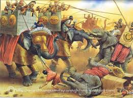Setiap gajah perang biasanya dilengkapidengan rengga gajah yang dipasang di bahagianbelakang. |