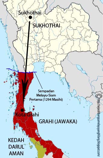 Kedudukan Kota Grahi dipercayaiterletak di daerah Chaiya, wilayah SuratThani, Thailand. |