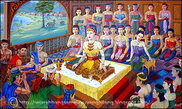 Adruja Wijayamala Singa atau Cik Siti WanKembang I dikelilingi oleh pasukan khas Seri Wijayamaladi balairung seri istana. |