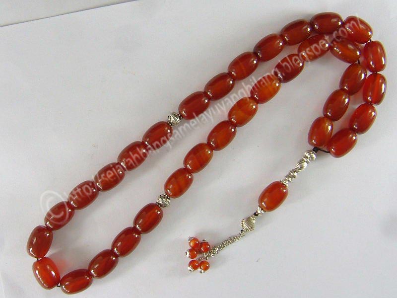 Adruja memakai tasbih pemberian seoranglelaki tua bertongkat di lehernya. |