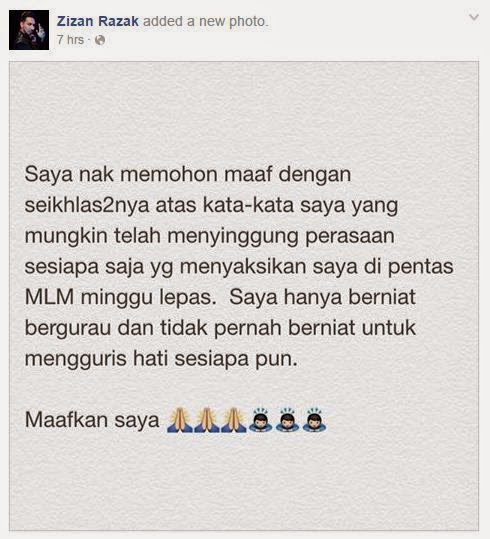 Zizan Mohon Maaf Secara Terbuka Isu Berlagak Di Mlm 2014