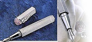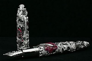 1) . Pen Aurora Diamente Fountain![]() Pen Aurora Diamente Fountain, Usd 1.47060juta. Diasaskan sejak tahun 1919, jenama Aurora merupakan perngeluar pen pertama di Itali. Baik aku beli kereta Ferrari dari beli pen nie..hahaha..Penni bertahtahkan 30karat berlian De Beers dan badan dibuat dari platinium. 2. Mystery Masterpiece ![]() Mystery Masterpiece yang dihasilkan oleh Mont Blanc and Van Cleef & Arpels Limited Edition bernilai Usd 730 000. Kolobrasi 2 syarikat ni dengan 3 orang pakar desingner menghasilkan pen ni dengan 3 edisi iaitu emerald, sapphires dan rubies. 3. Pen Caran d’Ache Gotica ![]() Pen Caran d’Ache Gotica dibuat dari 892 potongan berlian sebanyak 7.10 karat dan 72 emerald serta 72 rubie yang dinilai dengan Usd 406,453. Pen Gotica ini dibuat di China sempenan sambutan Ghotic art and architecture. 4. Pen La Modernista Diamonds ![]() Pen La Modernista Diamonds di nilai dengan Usd 265,000. Pen ini pernah mencatat rekod pen termahal pada tahun 2001 dan di senaraikan di Guinness Book Of Records. Pen ni dibuat oleh sebuah syarikat yang berpengkalan di Switzerland,Caran D'ache. Pen ni berjaya dijual di sebuah lelongan. 5. Pen Limited Edition Boheme Papillon ![]() Pen Limited Edition Boheme Papillon, di design sebagai tanda kagum dengan ciptaan semulajadi iaitu rama-rama dan pen ini di nilai pada harga Usd 230,410. Design dan ukiran yang cukup mengkagumkan dengan warna putih, kuning dan emas mawar bertahtahkan 1400 berlian dan sapphire.
