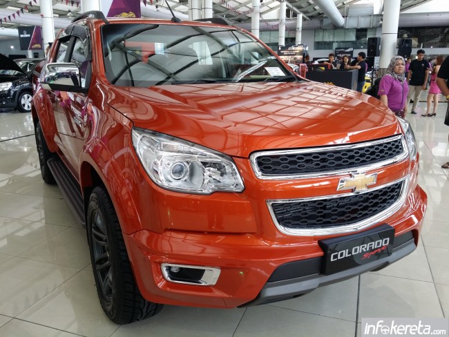 ![]() Dalam Naza World Auto-Mania 2015 yang berlangsung pada hujung minggu lalu di Petaling Jaya, Cherolet Malaysia telah pun memperkenalkan model Colorado Sport Edition. Tampil dengan imej yang lebih agresif dan garang, pikap ini dijual pada harga atas jalan RM138,967.36, berserta insurans. Colorado Sport Edition ini dibina berasaskan model sedia ada Colorado 2.8 LTZ Muscle Edition (RM113,781.76 dengan GST) tetapi ditampilkan dengan sedikit elemen baharu termasuk tujuh bahagian kit badan (termasuk gerbang roda yang lebih lebar), rim 18-inci dengan tayar prestasi tinggi dan roll bar belakang yang lebih sporty. Padanan kit badan ini sekali gus telah menambahkan imej yang lebih agresif dan sporty buat Colorado Sport Edition ini. Bahagian kabinnya juga turut diberikan sedikit sentuhan lebih sporty dengan penampilan kulit upholstery SE. Malah kali ini, model Colorado turut dilengkapi dengan kamera undur. Tidak cukup sekadar gaya, Colorado Sport Edition juga hadir dengan pakej suspensi yang lebih sport, dimana keselesaan pemanduan dan pengendaliannya telah dipertingkatkan. Ini termasuklah ketinggiannya telah direndahkan sedikit, memberikan rupa yang lebig agresif. Bagi pakej Sport Edition ini, pembeli juga mempunyai pilihan untuk memiliki lampu nyalaan siang LED, roller cover untuk bahagian belakang serta pek prestasi. Colorado Sport Edition dijanakan oleh enjin 2.8 Duramax turbodiesel dengan kuasa 193 hp dan tork 500 Nm. kredit:www.infokereta.com