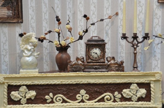 Pusat membeli-belah di Kaliningrad, Rusia menyambut ulangtahun kelima dengan mewujudkan sebuah bilik sepenuhnya daripada coklat. Pengukir Climent Elena mengukir 420 kilogram coklat gelap (dark chocolate) dan  coklat putih.
