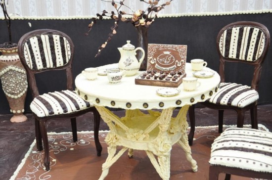 Biasa yang kita ketahui, perabot diperbuat daripada kadbod, kayu jati dan lain-lain. Tapi kali ini perabot bilik diperbuat daripada coklat. Bukankah coklat adalah makanan manis yang paling disukai oleh ramai orang? Bolehkah dijadikan perabot? Tidak cair atau melekit?