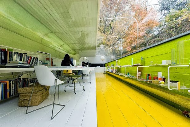Di Madrid, sebuah pejabat dibina agar para pekerjanya dapat merasai suasana seperti bekerja di dalam hutan. Pejabat ini berbentuk tiub aerodinamik ini telah direka oleh seorang arkitek Sepanyol, Jose Selgas dan Lucia Cano, bagi membolehkan para pekerja merasa seolah-oleh mereka sedang bekerja di dalam hutan Sepanyol yang indah. Separuh daripada bangunan pejabat unik ini, direka khusus oleh dua orang arkitek ini untuk firma arkitek mereka, Selgascano, dibina di dalam tanah di sebuah hutan di luar Madrid. Ini bagi memastikan pejabat mereka kekal sejuk dan nyaman walaupun pada musim panas. Tingkap-tingkap melengkung yang dibina di siling sepanjang pejabat dapat menghapuskan keperluan bagi penggunaan sebarang lampu pada waktu siang. Tingkap-tingkap ini juga boleh dibuka dan ditutup bagi mengekalkan pengaliran udara bersih di dalam pejabat. Separuh dari bangunan ini juga mempunyai dinding kaca yang terlindung sebagai tempat teduh untuk para pekerja dari cahaya matahari secara langsung. Bangunan pejabat ini juga mempunyai lantai tenggelam sepanjang tingkap yang membolehkan para pekerja duduk searas pada paras mata dengan lantai hutan. Keadaan ini menampakkan suasana pejabat ini kelihatan santai untuk bekerja. Sekaligus ia sebenarnya suatu cara mencintai dan menghargai alam semula jadi. Bayangkan anda bekerja di sebuah pejabat yang dikelilingi oleh hutan yang indah! - CARI Infonet