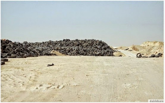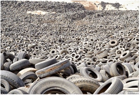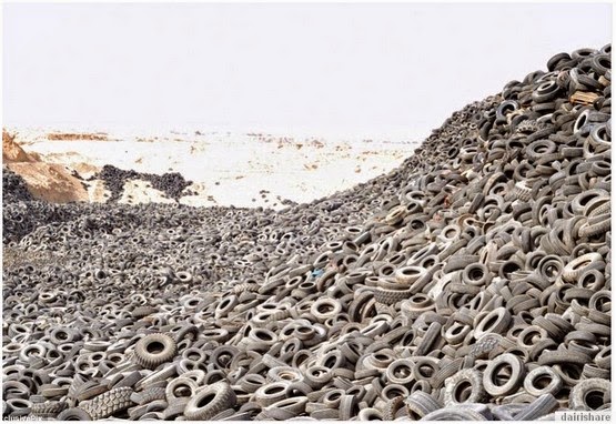 Setiap tahun lubang gergasi yang digali di padang pasir akan dipenuhi dengan tayar lama. Lebih daripada tujuh juta tayar ada di sana. Keluasan kawasan tepat buangan tayar sangat begitu luas sehingga boleh dilihat dari angkasa lepas. ![]() Sumber info : dairishare |