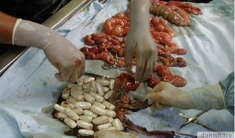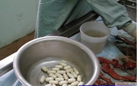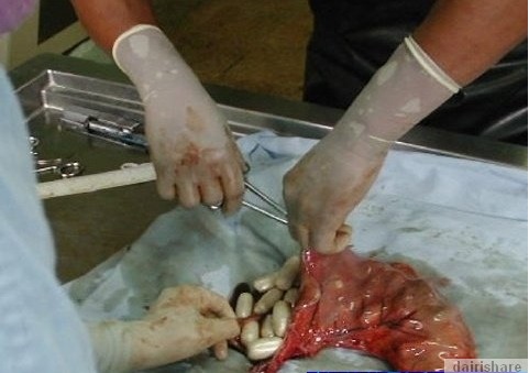 Akibatnya, dadah tersebut pecah dan mati kerana 'over dos'. dadah tersebut dibungkus menyerupai kapsul kecil dan ketika pasukan forensik membedah mayat tersebut, mereka terkejut dengan penemuan yang terlarang ini. -CARI Infonet.