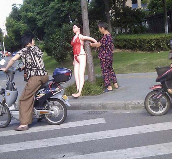 Wanita atau nenek tersebut memasang boneka seks yang diikat pada sebatang pokok di tepi jalan. Tujuannya adalah agar penunggang akan memperlahankan kenderaannya kerana ingin melihat anak patung tersebut.