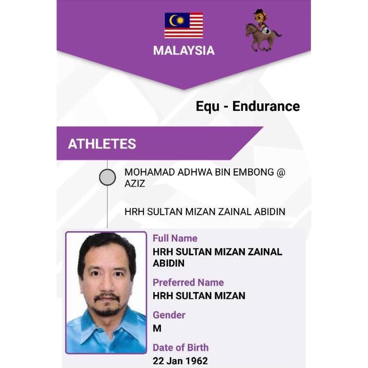 Satu lagi berita baik dalam pungutan pingat emas buat kontinjen negara dalam Sukan SEA Kuala Lumpur 2017. Ini kerana Sultan Terengganu, Sultan Mizan Zainal Abidin berjaya membantu skuad negara menambah koleksi emas selepas menjuarai kategori individu dalam acara endurance (kuda lasak) Sukan SEA ke-29 di Taman Endurance Antarabangsa Terengganu (TIEP) di Lembah Bidong, Setiu di Terengganu pagi tadi. Baginda melengkapkan trek bagi acara 80 kilometer dengan catatan masa 3 jam 48 minit 38 saat. Sultan Mizan yang menunggang kuda bernama RTES Annaversary mencatatkan jumlah purata kelajuan 20.994 kilometer sejam sekali gus melebur rekod lama yang dipegang Sulaiman Muda dalam temasya Sukan SEA 2013 di Myanmar menerusi 6 jam 26 minit dan 04 saat.