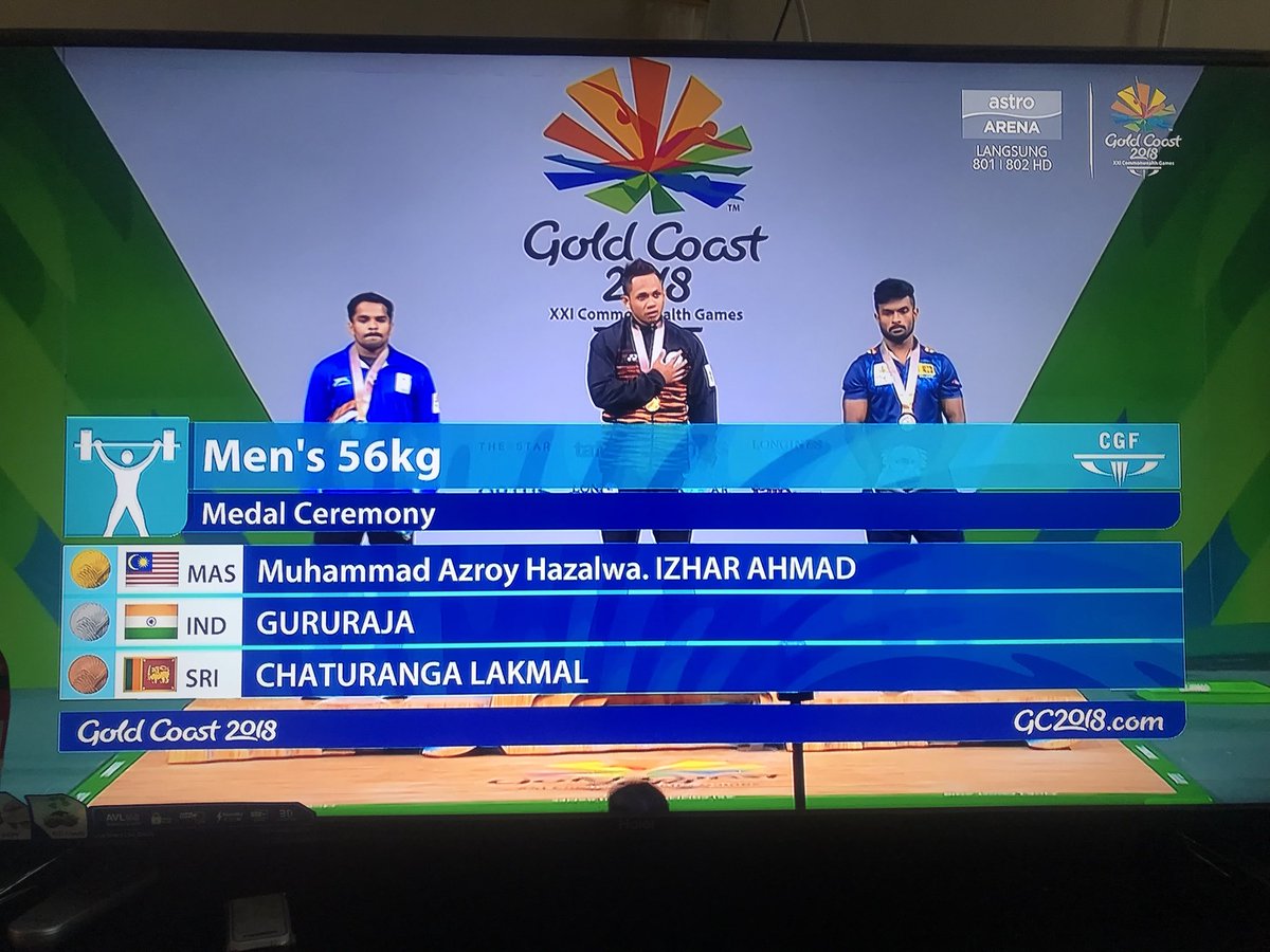 Pingat Emas pertama #GC2018 untuk Malaysia berjaya disumbangkan oleh atlet angkat berat kita, Azroy ...