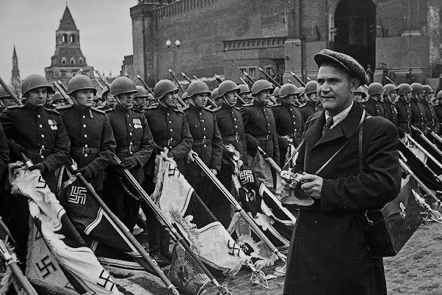 Siapakah Yevgeny Khaldei? Nama sebenar beliau adalah YevgenyAnanevich Khaldei yang merupakan seorang jurugambar ternama Kesatuan Soviet.Beliau terkenal dengan fotonya dari perang dunia kedua yang memaparkan tenteramerah sedang mengibarkan bendera kesatuan soviet diatas Reichstag, Berlinyang menandakan kekalahan Jerman. Khaldei mempunyai latar belakang Yahudi-Ukraine. Beliaumeminati bidang nie sejak kecil lagi dengan mula membuat kamera dari cerminmata milik neneknya. Dengan kamera pertamanya itu dia mula membuat eksperimendengan mengambil gambar adik-adiknya. Pada usia 18 tahun beliau mula berkerjasebagai jurugambar di Agensi Berita Tass yang berpengkalan di Moscow. Apabilatentera Jerman menyerang Rusia, beliau telah dihantar untuk mengambil gambarperang dunia kedua tersebut dengan berbekalkan kamera,beg dan bahan kimia.Khaldei menghabiskan masa 1481 hari dalam peperangan Rusia-Jerman sebagaiwartawan untuk Agensi Berita Tass dan banyak hasil kerja beliau diterbitkandalam Pavda.