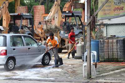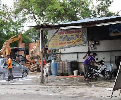 Bertindak berpandukan maklumat disalurkan oleh orang ramai berhubung premis mencuci kenderaan dimonopoli oleh warga Bangladesh, saya dan sahabat, Mohd Razali Harun, anak kelahiran Sungai Buloh, SHAH ALAM, Selangor, melakukan tinjauan petang tadi.