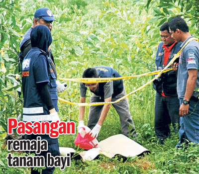 BINTULU – Rahsia besar seorang remaja lelaki berusia 16 tahun yang tergamak menanam bayinya sendiri yang baru lahir di Kampung Baru di sini terbongkar apabila kubur bayi malang itu digali polis semalam. Remaja itu ditahan pada pukul 2 pagi ketika sedang berehat di rumah keluarganya. Difahamkan, bayi malang itu dilahirkan hasil hubungan sulit suspek dengan teman wanitanya yang berusia 15 tahun. Menurut sumber, mayat bayi malang itu ditanam oleh suspek di kawasan belukar kira-kira 20 meter dari belakang rumahnya sebaik dia dilahirkan pada 22 September lalu. “Bagaimanapun, tindakan suspek akhirnya terbongkar selepas teman wanitanya mengalami pendarahan teruk sebelum dihantar oleh ibunya ke hospital.