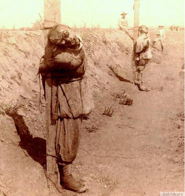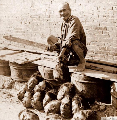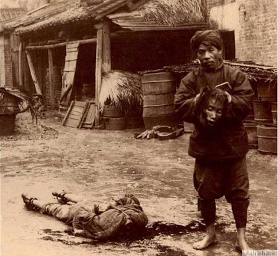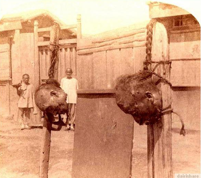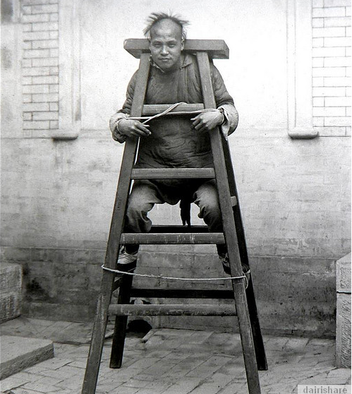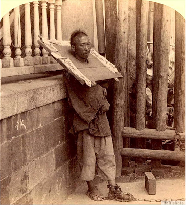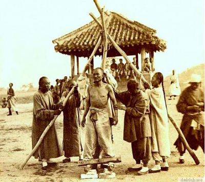 Pemotongan kepala, menjerut dan kebuluran adalah semua kaedah pelaksanaan hukuman yang diterima dalam abad ke-19 China. Walaupun mereka yang tidak dihukum mati, mereka di siksa atau dia biarkan kebuluran dengan kaki dan tangan diikat dan di kurung.