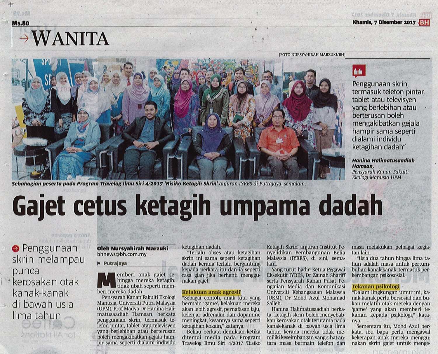 Keadaan itu boleh membawa kepada kemerosotan daya tumpuan dan ingatan selain mengurangkan perasaan malu golongan remaja untuk melakukan perbuatan tidak sihat. Kajian tersebut melibatkan penggunaan mesin pengimejan resonans magnetik (MRI) untuk merakam imej otak 18 pelajar universiti berusia 18 tahun yang melayari internet selama 13 jam sehari, enam kali seminggu. Kumpulan penyelidik berkenaan membandingkan imej MRI tersebut dengan imej MRI kumpulan pelajar yang melayari internet cuma dua jam sehari. Selepas perbandingan dibuat, mereka mendapati korteks atau bahagian kelabu pada otak 18 pelajar yang ketagih Internet itu mengecut berbanding rakan mereka yang kurang melayari internet. "Kajian kami membayangkan ketagihan Internet pada jangka panjang boleh membawa kepada kemerosotan struktur otak," kata kumpulan penyelidik itu. Bahagian korteks otak berfungsi untuk memproses ingatan, emosi, pertuturan, penglihatan dan pendengaran di samping mengawal pergerakan anggota manusia. Kajian itu dilakukan oleh sekumpulan pakar neurologi dan radiologi beberapa universiti dan hospital di China. Dianggarkan seramai 24 juta remaja negara berkenaan ketagih melayari Internet. Bayangkan pula anak-anak kita yang masih kecil dan bersekolah kini mula ketagih dengan gadget yang kita sendiri berikan kepada mereka hanya untuk "mendiamkan mereka" supaya "tidak mengganggu kerja harian" kita. Fikir-fikirkan sebelum terlambat, mungkin kesannya belum nampak tapi dalam jangka masa panjang pasti akan memberi kesan negatif jika tidak dikawal dengan segera. - CARI |