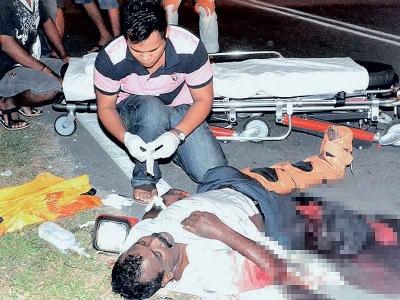"Ketika sampai di simpang Bukit Kelicap di sini, mangsa telah merempuh sebuah kereta jenis Nissan Latio dan menyebabkan kakinya terputus dan dia tercampak di atas jalan raya,'' katanya. Namun bahagian kaki yang putus itu tidak ditemui oleh orang ramai termasuk anggota polis yang turut menggunakan khidmat anjing pengesan. - |