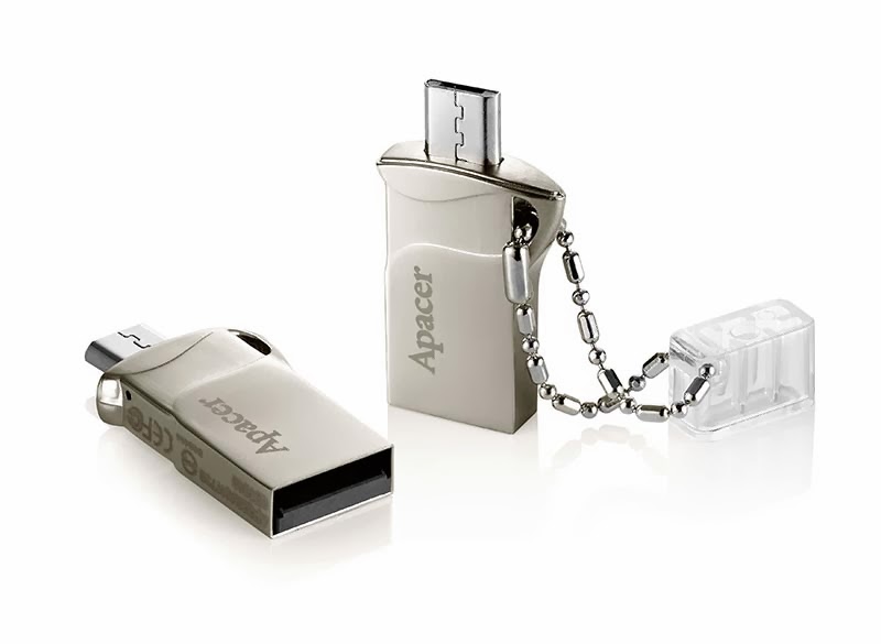Apacer rolls out AH173 OTG (On-The-Go) mobile flash drive, featuring dual interfaces, ultra-large capacity, ultra-svelte thinness, and metallic chic. Once connected to a OTG-supported device, AH173 mobile flash drive doubles your Android smartphone and tablet capacity with maximum 32GB. It allows you to carry video, audio and large presentation files more easily. The ultra-thin zinc alloy body of the AH173 mobile flash drive exudes the sharp professional image of business people. With built-in USB/MicroUSB interfaces, files can be transferred between mobile devices and PCs at exceedingly high speeds.![]() MicroUSB/USB dual-interfaces enable fast file transfer The AH173 mobile flash drive implements innovative built-in MicroUSB and USB dual-interfaces. The front-end MicroUSB allows the connection with smartphones and tablets with OTG functionality to expand storage space. To connect with various PC devices, the flash drive also has the standard USB plug on the back. Dual interfaces in unison fully meet business mobile storage demands. Compared to Wi-Fi, 3G, Bluetooth, or other wireless file transfer modes, Apacer AH173 OTG mobile flash drive with the Micro USB plug delivers a faster and more stable transmission with no limitation on device specifications and no adverse effect on signal quality, so as to greatly save time while showing off an impression of professional efficiency. High-quality zinc alloy with 0.6cm professional shape The AH173 is cast with high-quality zinc alloy, presenting a sleek and delicate streamlined style. These features not only match the refined taste of business people but also enhance the deft touch. The AH173 OTG mobile flash drive can act as a hanging ring, and its Pen Cap Design takes the use of a metallic ball chain, smartly connecting the cap with the body. Therefore, your smart lifestyle is fully enhanced by the portable design which cannot only be attached to cell phones and key chains, but can also be stored in your wallet and card case since it is only 0.6cm thick. With the large 32 GB capacity, presentations and large files can be carried around everywhere As 16GB remains the standard storage capacity for most smartphones and tablets, users can only install APPs and shoot videos and photos due to such a limited storage space. Storing a large number of working files in mobile devices not only takes up storage space but also inhibits sharing and exchange. The AH173 OTG mobile flash drive comes in three capacities (8GB, 16GB, and 32GB), featuring doubled storage and brand new dual interfaces. Business professionals who use mobile devices in presentations or conferences can achieve ultimate work efficiency with the easy file transmission between mobile devices and PCs, thus substantially showcasing their professionalism with no additional effort.
