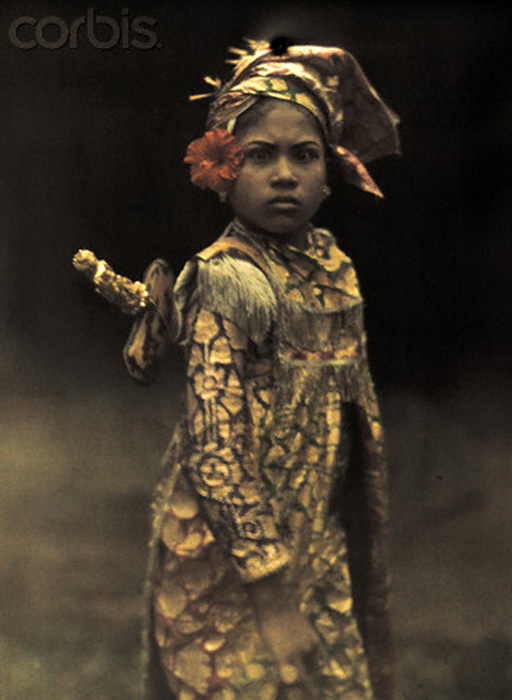 | | 1928, Bali, Indonesia --- A nine-year old dancer in her gilded crown and costume --- Image by © Franklin Price Knott/National Geographic Society/Corbis |