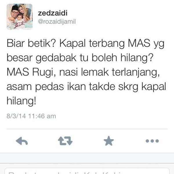 “Saya tidak ada niat langsung untuk mengeluarkan kenyataan yang menyinggung perasaan sebegitu. Pada mulanya saya dapat tahu pesawat sudah selamat mendarat cemas dan saya hanya mengetahui perkara tersebut menerusi internet kerana berada di luar rumah untuk membeli sarapan pagi. “Jadi saya kaitkan isu-isu yang berkaitan dengan MAS dan kerana jumlah patah perkataan di Twitter yang terhad, saya tidak dapat menyambung ayat terakhir iaitu saya berharap MAS dapat mempertingkatkan perkhidmatannya. “Namun sebaik tiba di rumah, ketika saya menonton berita mereka sahkan pesawat tersebut masih belum dapat di kesan dan saya segera melihat Twitter saya dan saya lihat sudah banyak pihak ‘retweet’ status saya dan saya di kecam banyak pihak,” jelasnya. Zed berkata, menyedari kekhilafannya dia segera memadam statusnya sebelum itu dan meminta semua mendoakan keselamatan ke semua penumpang diikuti saya lagi status memohon maaf menerusi laman Twitter dan juga Facebook. “Percayalah saya tiada niat langsung untuk menjadikan ia sebagai satu bahan jenaka. Silapnya saya kerana saya terus mempercayai sumber di internet yang mengatakan mereka telah selamat mendarat. “Biarpun tiada ahli keluarga saya yang terlibat dalam insiden tersebut, namun sebagai rakyat Malaysia, saya doakan mereka semua berada dalam keadaan selamat. “Saya juga ingin memohon maaf sekali lagi kerana mengeluarkan kenyataan sebegitu sebelum ini,” ujarnya kesal. Tambah Zed, bagi menggelakkan perkara sama berulang, dia berharap semua pihak tidak cepat mempercayai sumber dari internet, sebaliknya rujuk kepada portal media sebenar dan bukannya individu biasa atau blogger tertentu. “Kadangkala mereka hanya dengar dari sumber A, sumber B, sedangkan mereka sendiri tidak tahu status sebenar dan terus muat naik agar blog mereka menjadi terkenal. “Tapi kalau media, sebelum mereka melaporkan, mereka ada sumber yang sahih dan boleh dipercayai. Saya harap apa yang terjadi pada saya tidak terjadi pada orang lain. “Saya juga minta pihak - pihak yang menghentam saya sebelum ini, agar mendapatkan penjelasan saya terlebih dahulu sebelum memberi sebarang komen,” katanya. Seniman masih tergantung Sementara itu, ditanya mengenai perkembangan Seniman kini, Zed berkata, masih ada beberapa isu yang tidak dapat diselesaikan hingga status persatuan tersebut tergantung. “Kami telah meminta Jabatan Pendaftaran Pertubuhan Malaysia (ROS) mengiktiraf Ahli Jawatankuasa terdahulu iaitu di bawah Presiden Harun Salim Bachik untuk mengadakan semula mesyuarat agung (AGM) dan ia telah diluluskan. “Namun ia mendapat bantahan dari pihak satu lagi yang mahu ROS mengadakan AGM Seniman. Jadi kita tunggu dan lihatlah macam mana kerana saya sendiri keliru apa yang mereka mahu sebenarnya kerana semua ini bukan merugikan saya tetapi Seniman,” katanya. Zed berkata, dia kini sibuk dengan beberapa program di bawah Pemuda Umno dan juga bersama Agensi Anti Dadah Kebangsaan (AADK). “Saya baharu dilantik sebagai AJK Biro Penerangan Pemuda Umno Malaysia dan sebagai Pengerusi AADK Wilayah Persekutuan. Jadi ada beberapa program yang saya buat bersama mereka,” katanya.