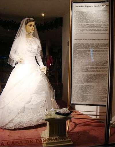 Patung yang memakai pakaian pengantin di sebuah butik di bandar Chihuahua di utara Mexico bukan sembarangan patung. Teori yang berlegar sejak dulu, La Pascualita sebenarnya bukanlah sekadar patung. Kononnya, La Pascualita berasal daripada tubuh seorang gadis yang telah diawet menjadi patung! ![]() Pada bulan Mac 1930, pertama kali patung La Pascualita dipertontonkan kepada umum disebalik kaca butik tersebut. Sebaik diletakkan disebalik cermin, patung yang didandan dengan pakaian pengantin ini cukup mudah menarik perhatian mata pengunjung yang lalu lalang di situ.Ramai yang memuji La Pascualita dan dianggap sebagai manekuin terbaik pada kualitinya pada zaman itu. Raut wajah yang cantik mempesona, bola mata yang bulat dan galak serta kulit wajah yang cantik kemerahan, membuatkan mata yang memandang tidak lekang untuk terus melihat La Pascualita. Bagaikan ada kuasa magnet yang menarik mata pengunjung untuk terus memerhatikan susuk tubuh patung ini. Warga kota Chihuahua merasakan ada suatu kelainan pada menekuin La Pascualita. Memandang patung itu bagaikan melihat seorang gadis hidup, yang mempunyai jiwa. Banyak ciri-ciri manusia terlihat pada patung ini. Rambut, raut wajah, kulit, malah kukunya tampak seperti manusia sebenar. ![]() ![]() ![]() Apabila diamati, penduduk mendapati wajah La Pascualita mirip dengan wajah Pascualita Esparza, pemilik butik itu pada zaman berkenaan. Maka, tersebarlah khabar angin yang mengaitkan patung itu dengan anak pemilik butik tersebut. Penduduk mula percaya, manekuin La Pascualita adalah anak gadis Esparza yang telah menemui ajal akibat digigit labah-labah beracun pada hari perkahwinannya. Esparza dituduh mengawet mayat anak gadisnya, lalu dipakaikan pakaian pengantin pada hari perkahwinan tersebut. Setelah itu, patung mayat anak gadisnya itu ditayangkan disebalik cermin butik tersebut. Ketika khabar angin itu hebat diperkatakan, Esparza telah tampil menafikan dakwaan penduduk. Namun, tindakannya sudah terlambat. Tiada siapa yang percaya dengan penafiannya. Dari sudut positif, khabar angin itu berjaya menarik perhatian ramai pengunjung. Bukan warga tempatan sahaja, malah pelancong dari luar termasuk para pengkaji sanggup datang untuk menyaksikan sendiri keanehan La Pascualita.